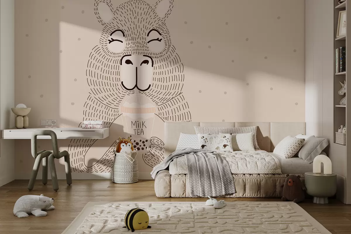 Fototapeten Große niedliche Capybara mit Blase Tee in minimalistischen Punkt-Stil auf einem beige gepunkteten Hintergrund N° w01122v1