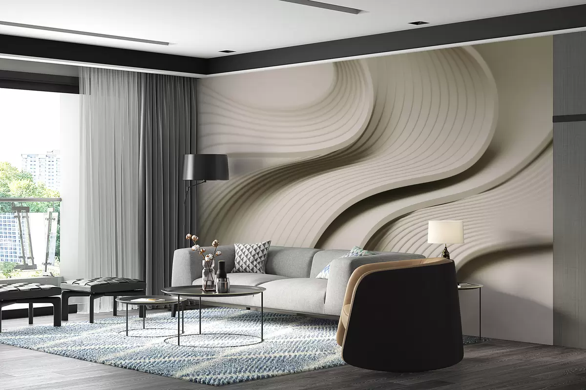 Fototapeten Elegante voluminöse Wellen im 3D-Stil in Beigetönen N° w01147v2