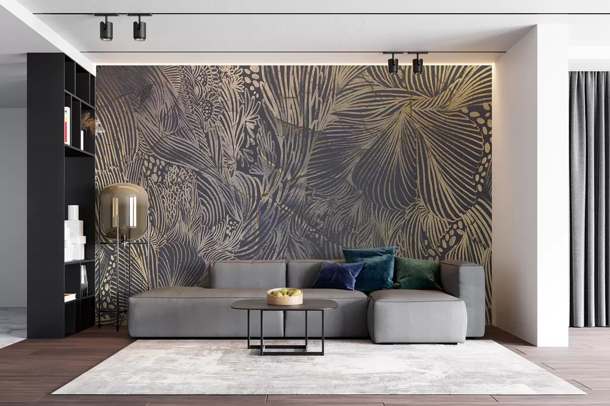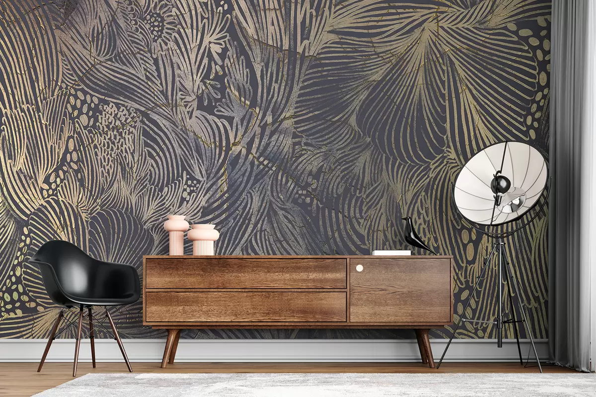 Fototapeten Abstrakter, strukturierter Luxusdruck mit sich überlagernden organischen Formen und Linien N° w01243