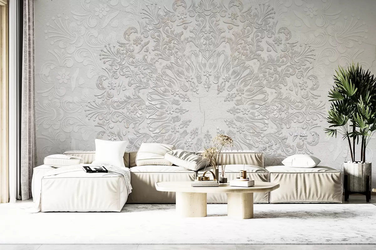 Fototapeten Ein hochdetaillierter Mandala-Druck, der ein wunderschönes und zartes Spitzendesign erzeugt N° w01249