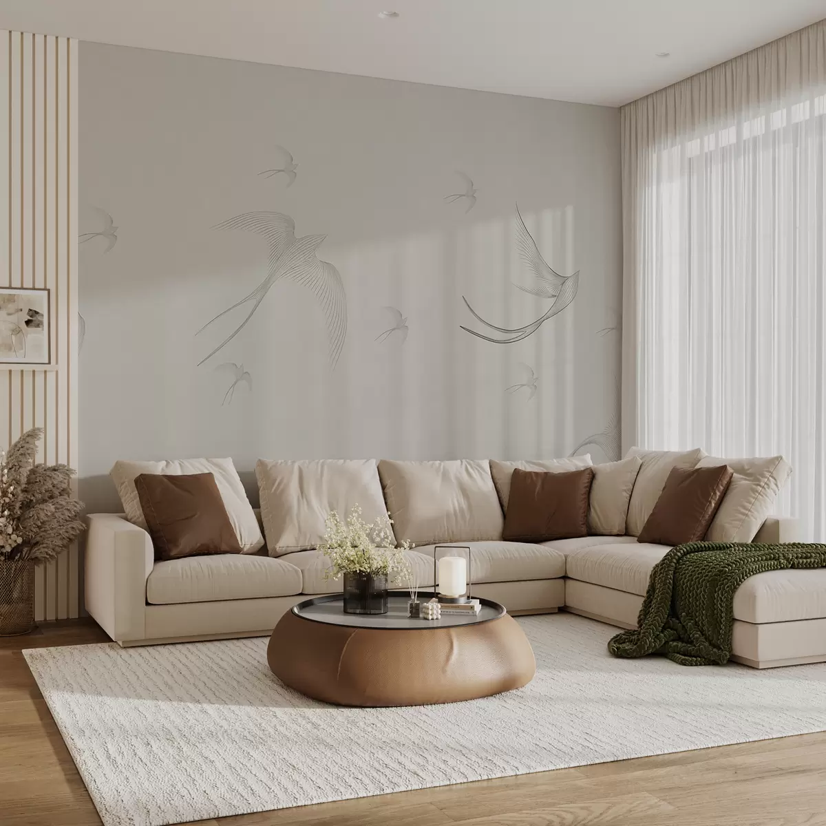 Fototapeten Lineare Schwalben auf beigem Hintergrund N° w01264v1