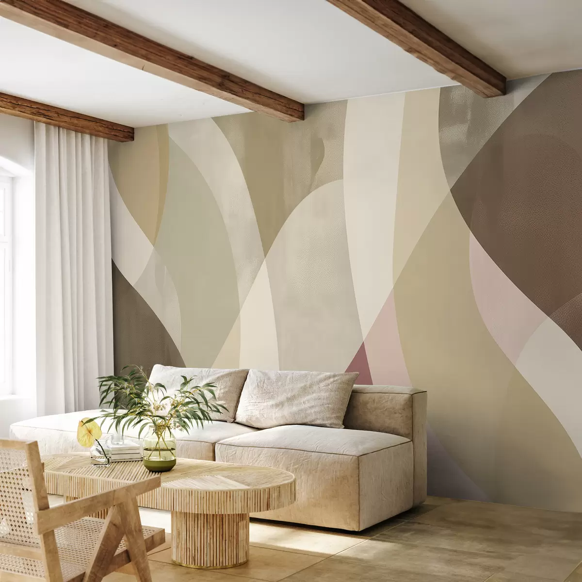 Fototapeten Weiche Rundungen in gedeckten Tönen mit fließenden Linien und beigen Farbverläufen, minimalistisch und modern N° w01334v1