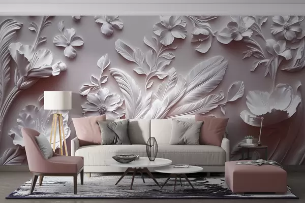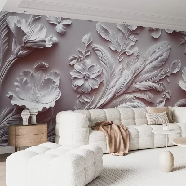 Fototapeten Exquisite erhabene Blüten und Blätter in Rosatönen N° w01356v1
