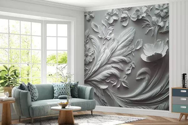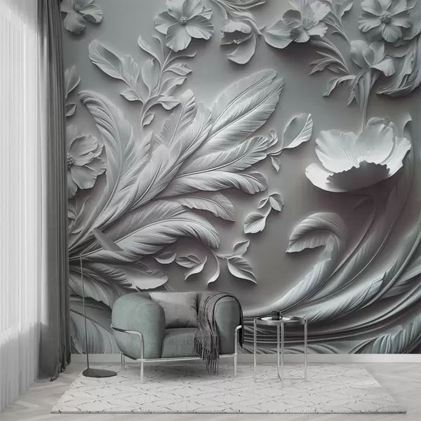Fototapeten Exquisite erhabene Blüten und Blätter in Grautönen N° w01356v2