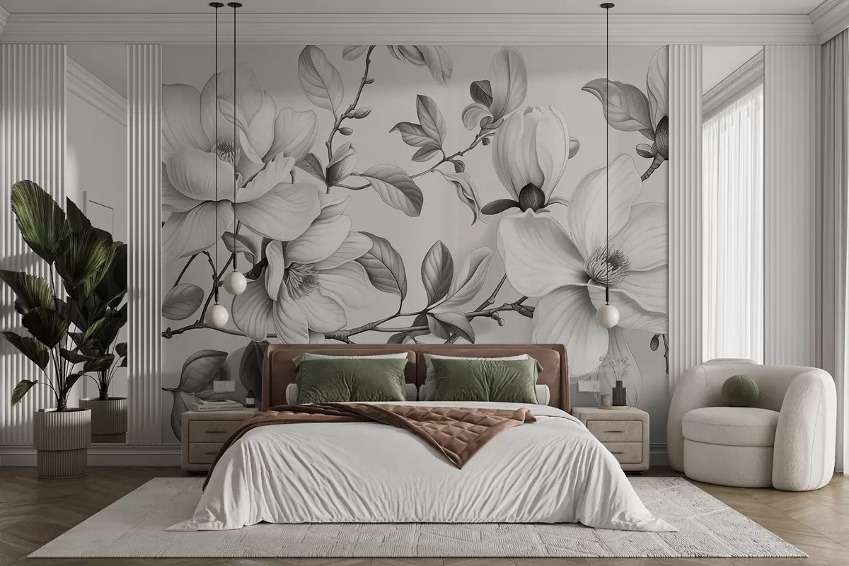 Fototapeten Monochrome Magnolien-Eleganz N° w01429