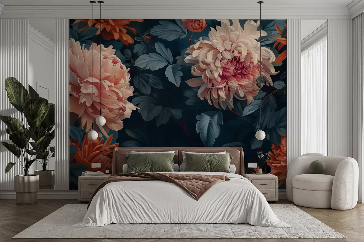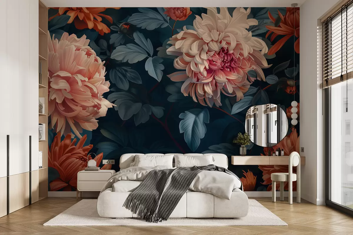 Fototapeten Elegante Komposition aus Chrysanthemen in Pastellfarben N° w01431