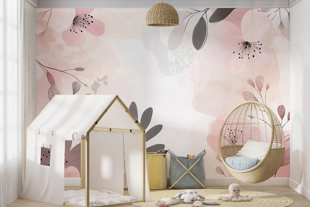 Fototapeten Abstrakte Blumenzeichnung, Natur, große Blumen, sanfte Pastellfarben, rosa Farbpalette N° w01451v1
