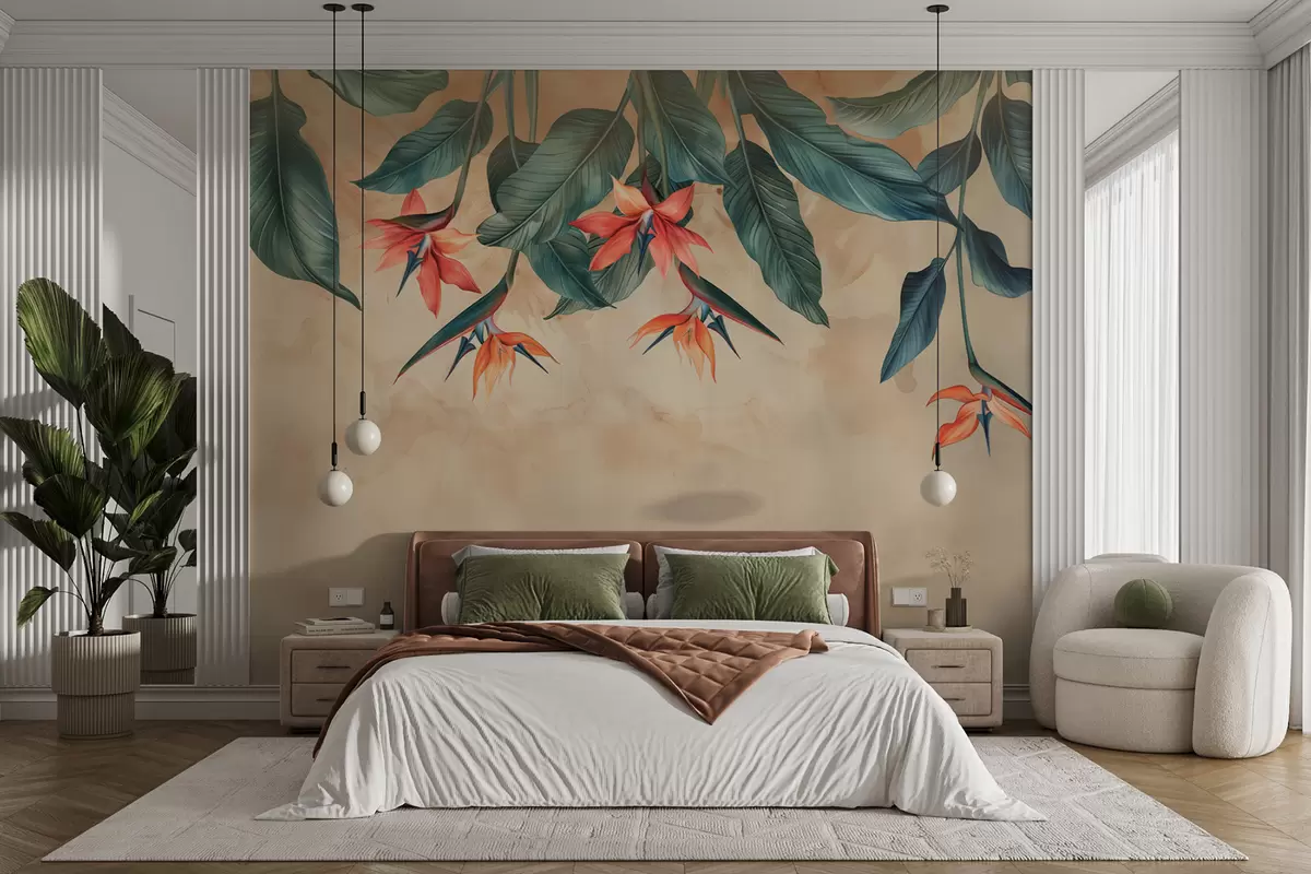 Fototapeten Tropische Blüte auf beigem Aquarellhintergrund N° w01485