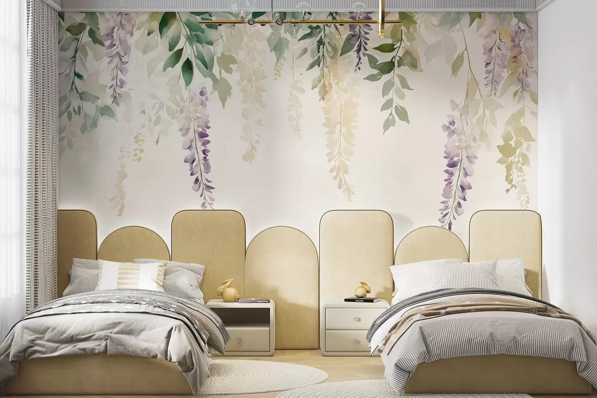 Fototapeten Wisteria Blume Ornament, floral, Aquarell, natürliche Farben N° w01545