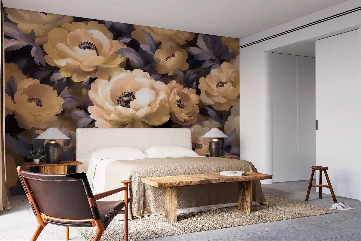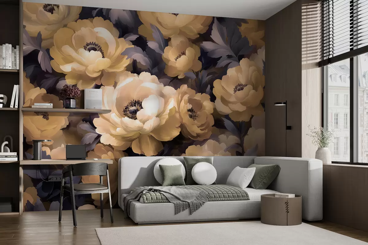 Fototapeten Floral Ölgemälde Stil basiert auf beige und lila Farbe N° w01581