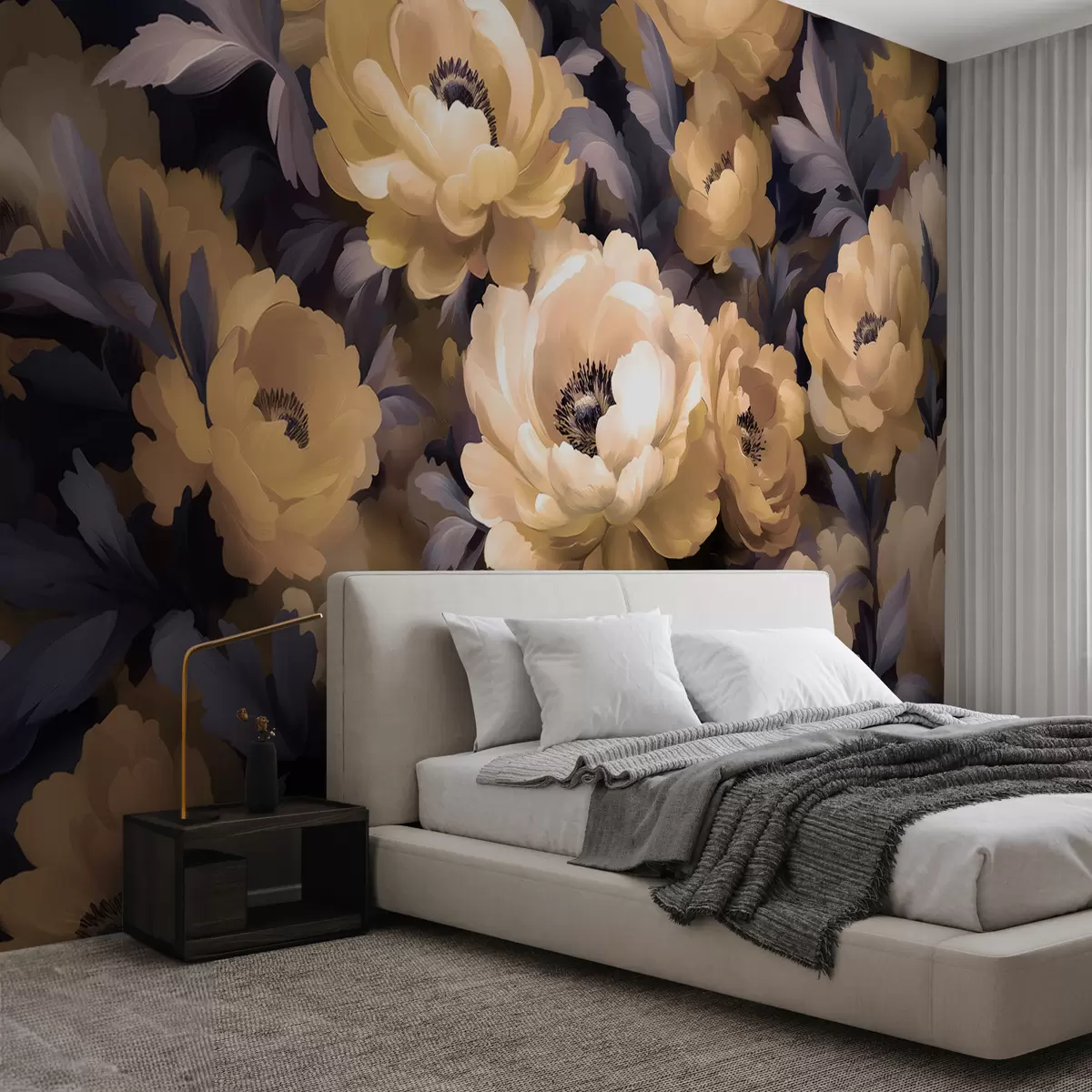 Fototapeten Floral Ölgemälde Stil basiert auf beige und lila Farbe N° w01581