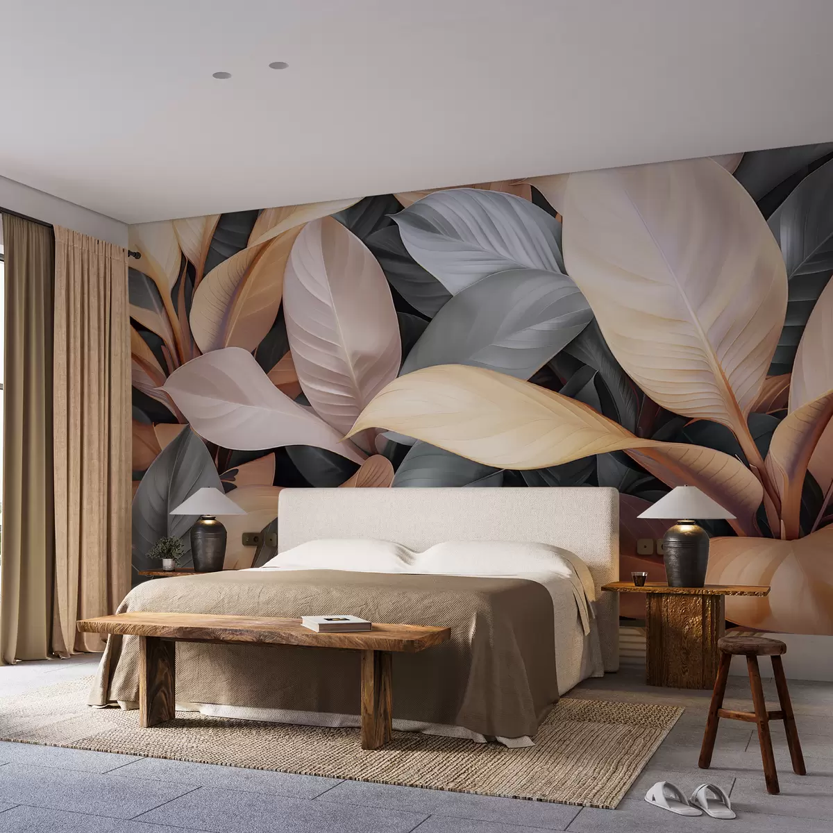 Fototapeten Große tropische Blätter in Blau- und Beigetönen N° w01587v2