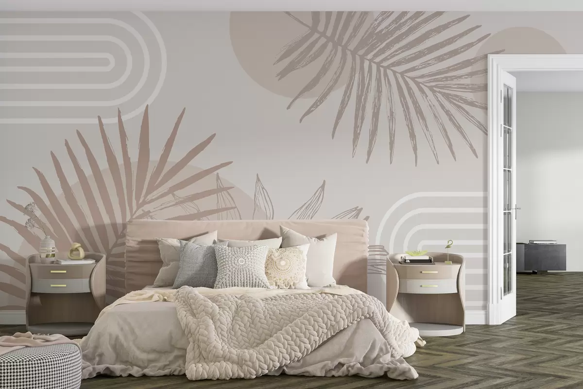 Fototapeten Geometrische Tapete mit Palmenblättern im Boho-Stil N° w01601