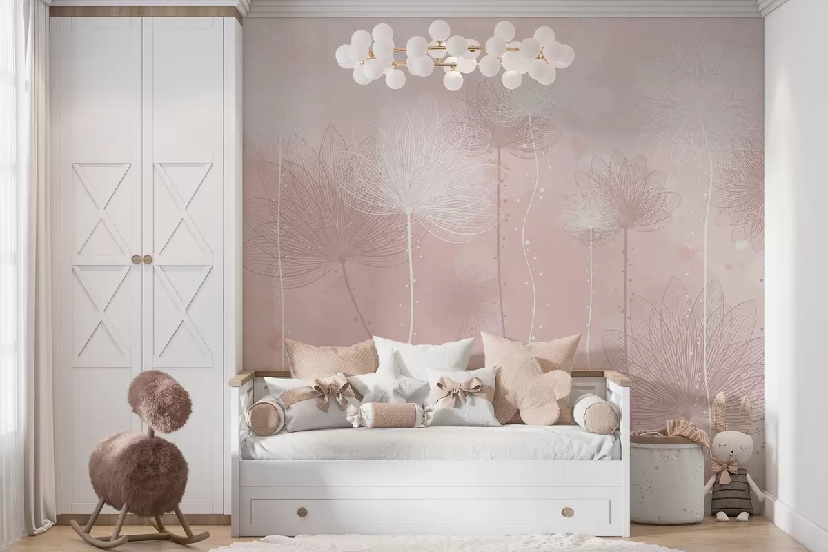 Fototapeten Zarte Blumen auf einem zartrosa Hintergrund N° w01645v3