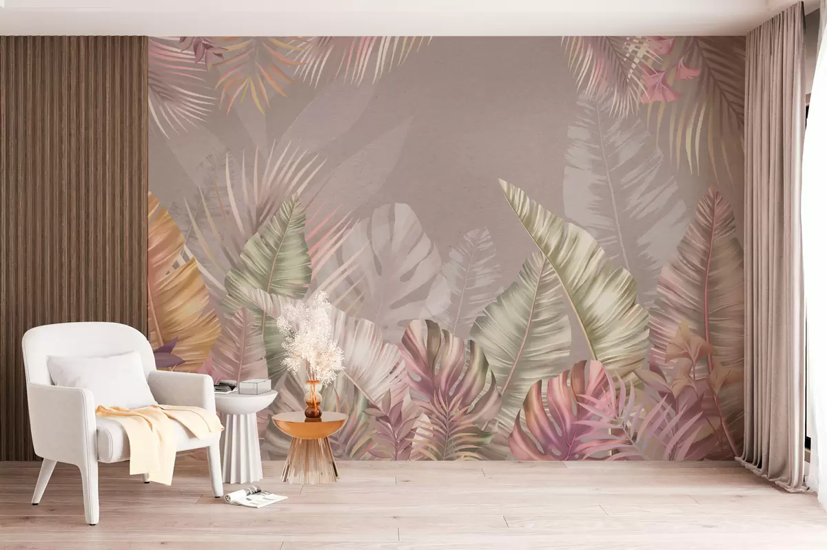 Fototapeten Tropische Blätter in sanften Pastelltönen N° w01684