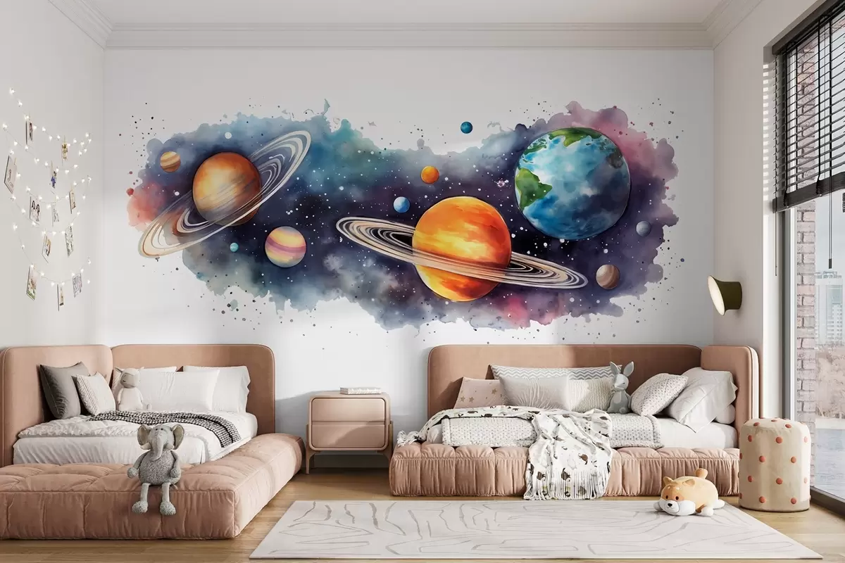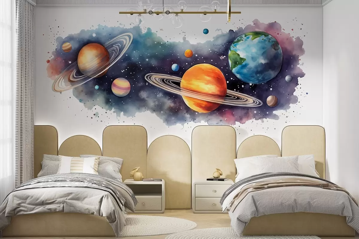 Fototapeten Aquarell Planeten, Weltraum, kosmisch, Erde, Saturn N° w01802