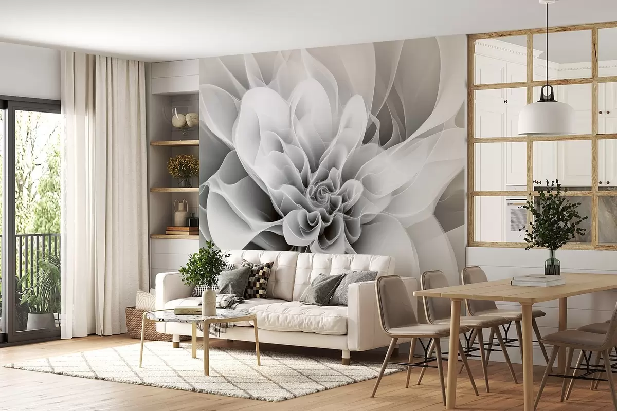 Fototapeten Elegantes abstraktes Bild einer Blume mit weichen Linien in Grau N° w01853v1