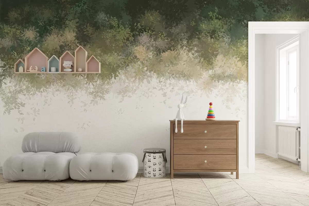 Fototapeten Schöne grüne Blätter, florale Ornamente, Aquarell, Natur N° w01879