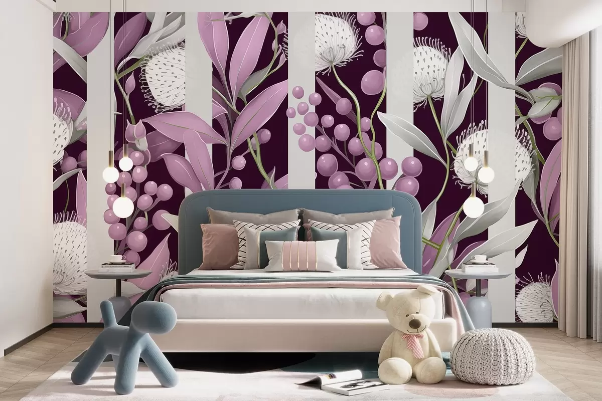 Fototapeten Blumen Ornament mit wilden Beeren, Vintage, rosa und grünen Farben N° w01886v1