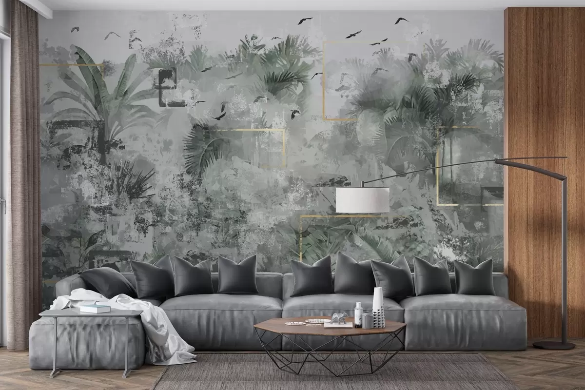 Fototapeten Regenwald-Silhouette im Grunge-Stil N° w01917