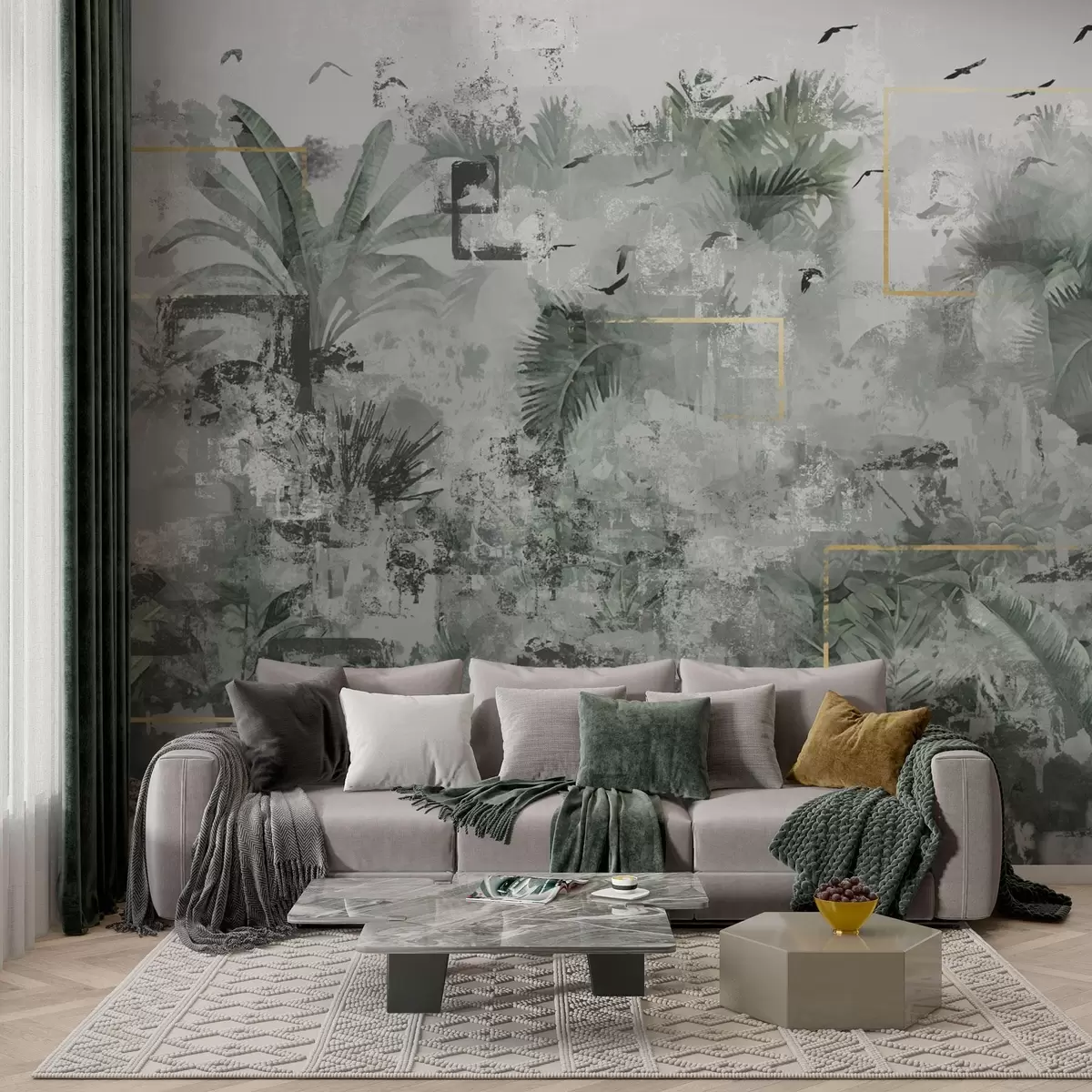 Fototapeten Regenwald-Silhouette im Grunge-Stil N° w01917