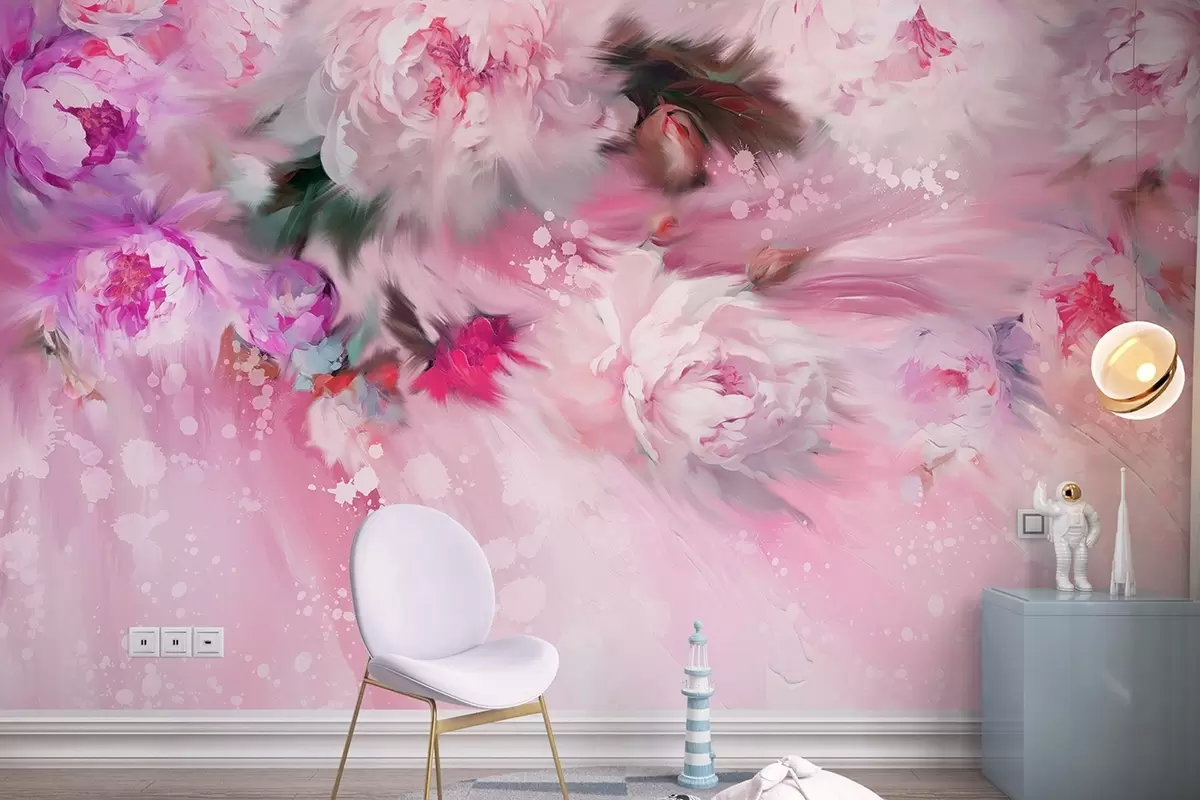 Fototapeten Acryl Pfingstrosen, Pinselstriche, floral, weiche Pastell rosa Farben N° w02021v1