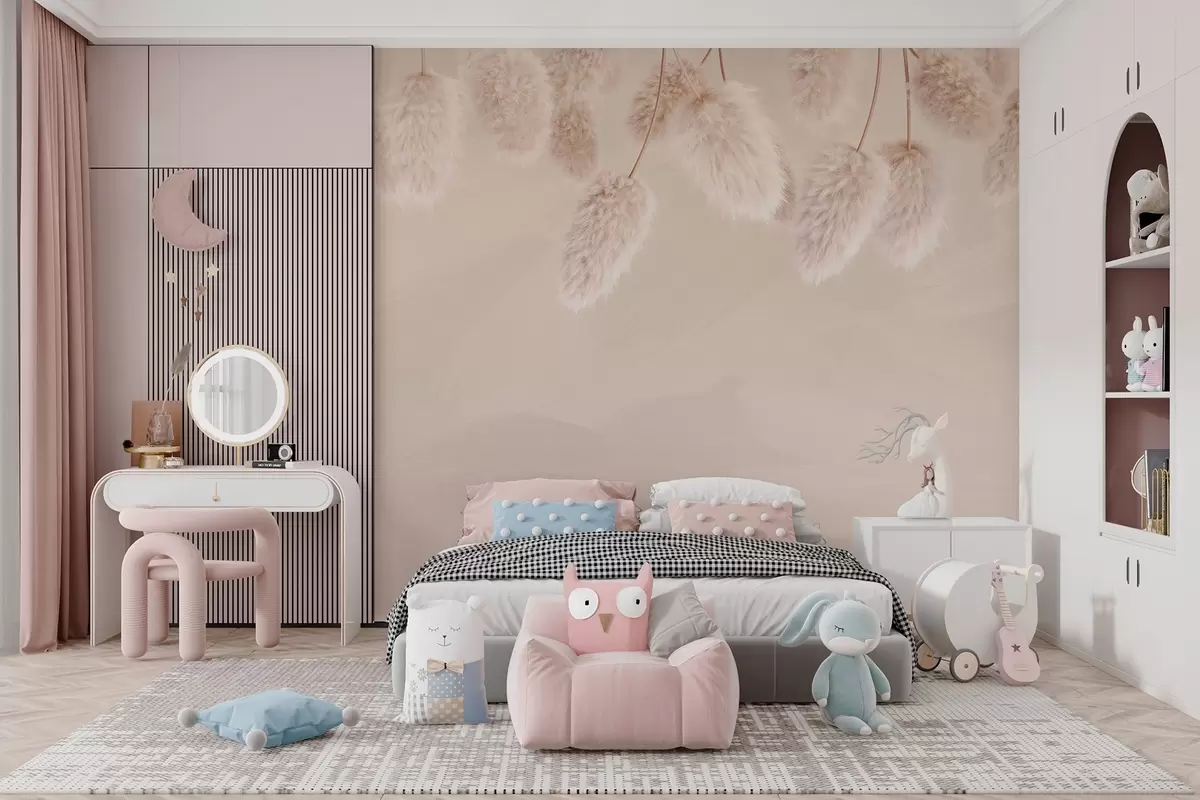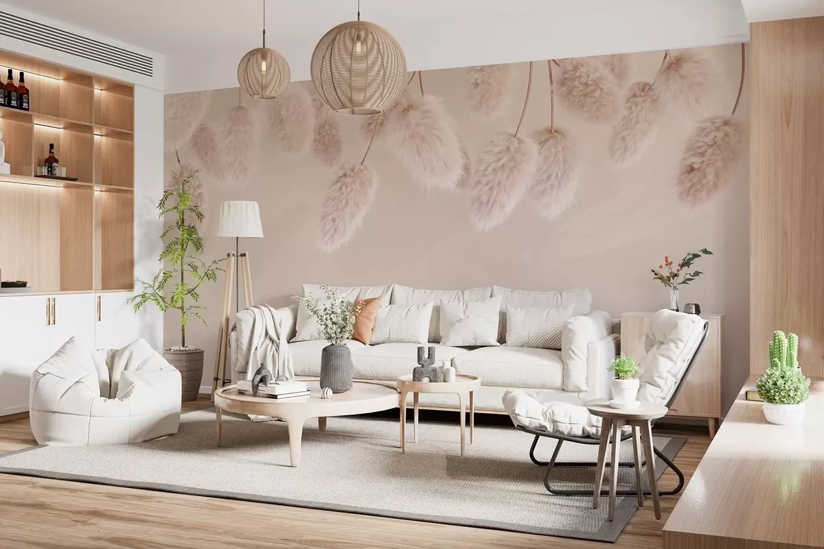 Fototapeten Sanfte Laguruswolken vor einem Hintergrund aus zartrosa Strichen N° w02071