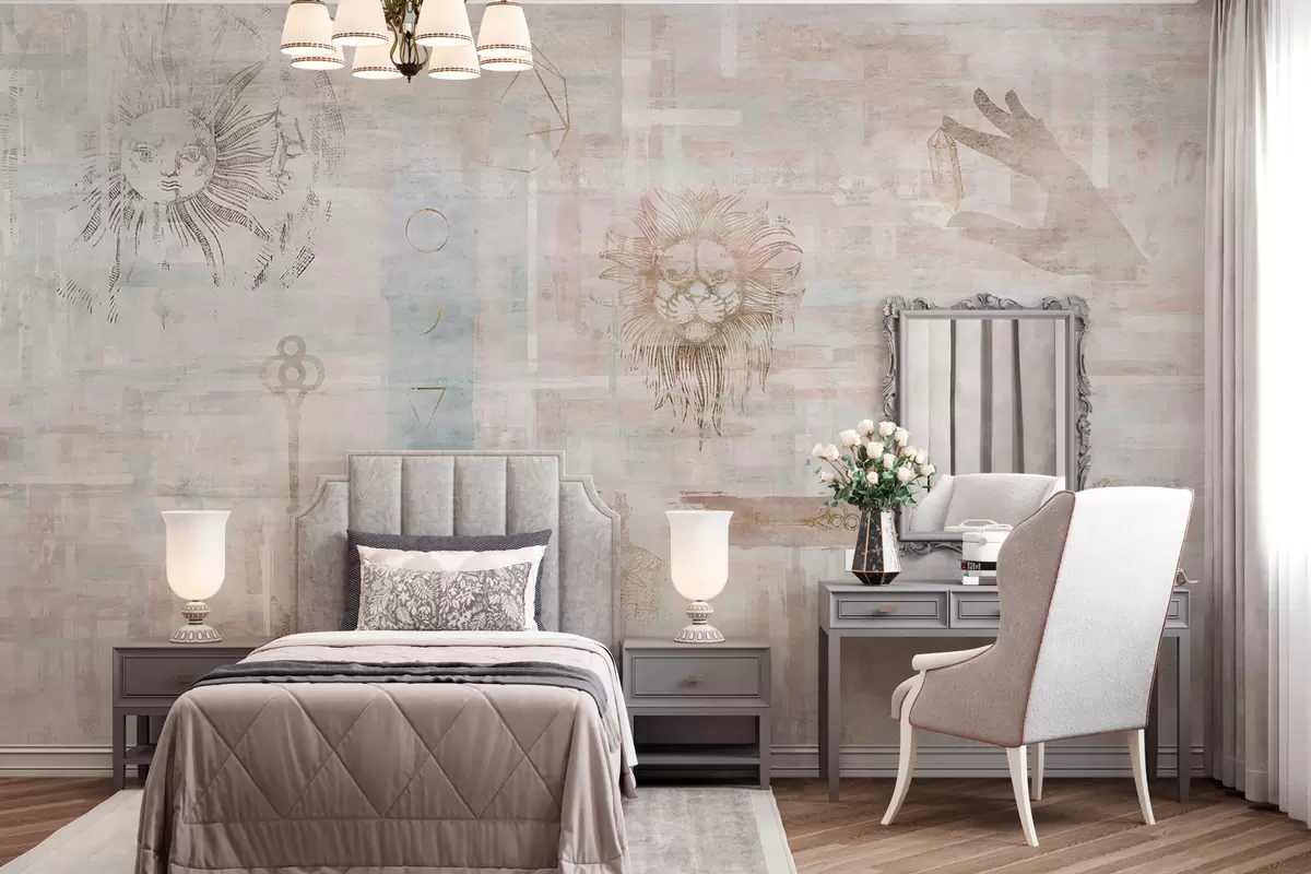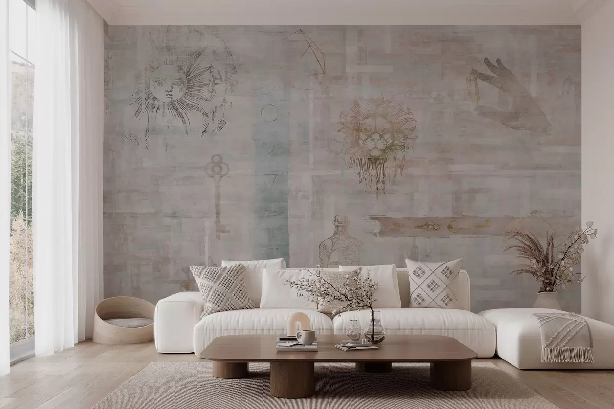 Fototapeten Tapete im Grunge-Stil mit Mustern im Vintage-Stil N° w02131