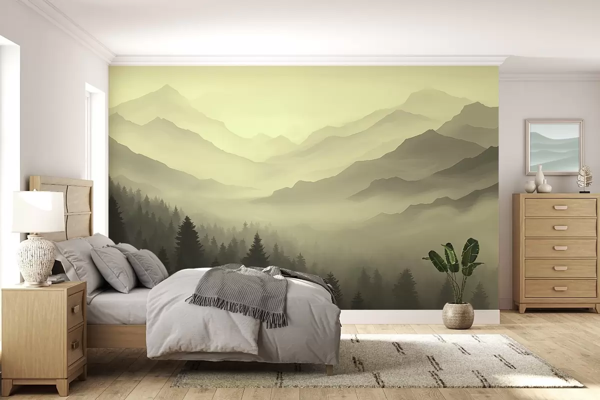 Fototapeten Wald und Berge in Grüntönen N° w02186v1