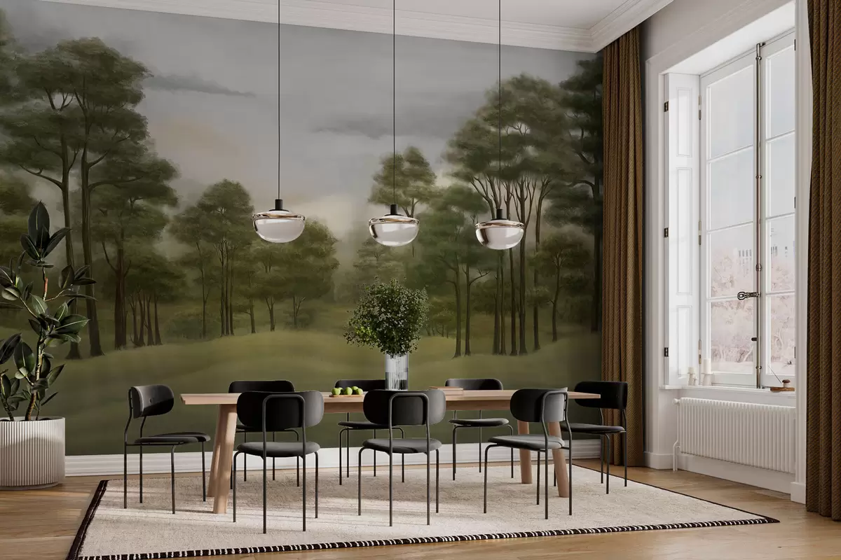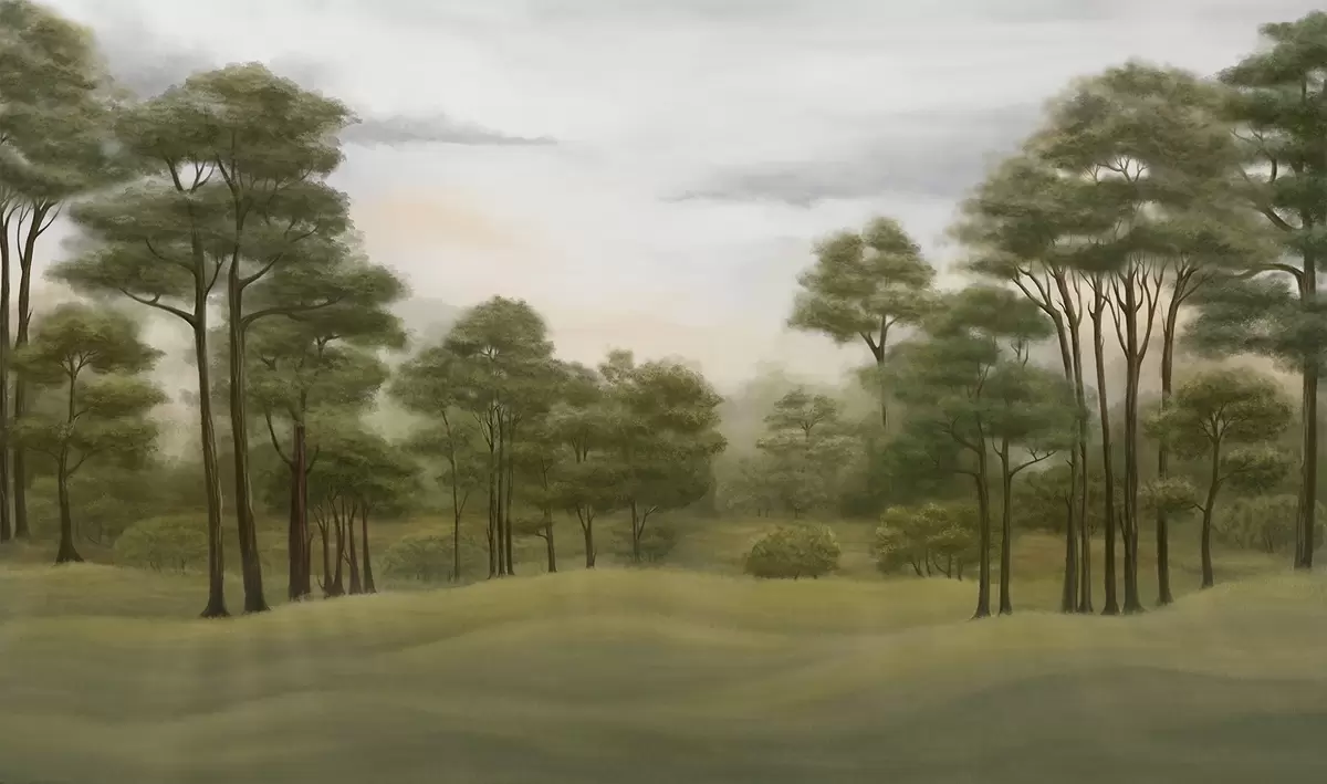 Fototapeten Ruhige Waldlandschaft in sanften Farbtönen N° w02193