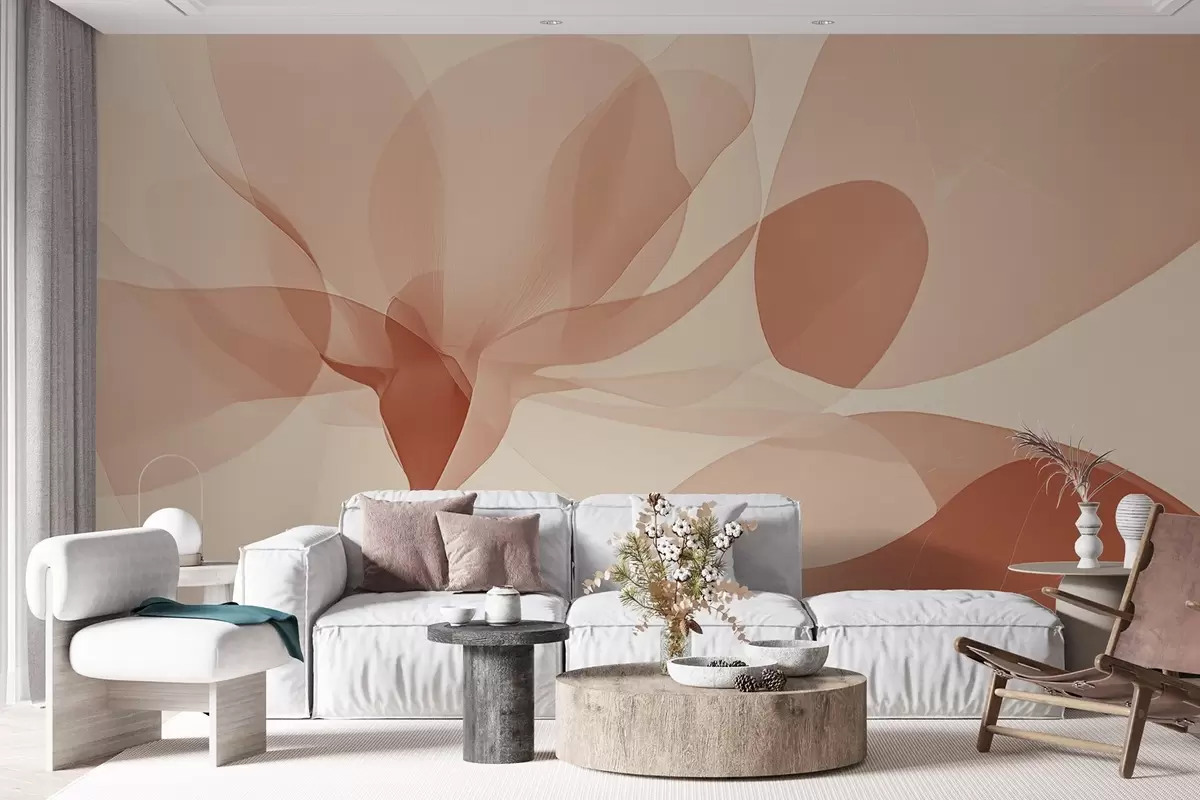 Fototapeten Zarte durchscheinende Gardenie und ihre Blätter in Karalfarbe N° w02194v1
