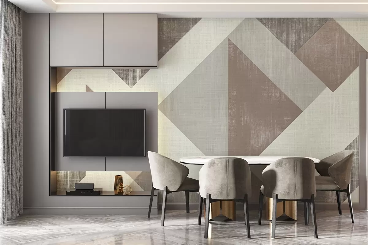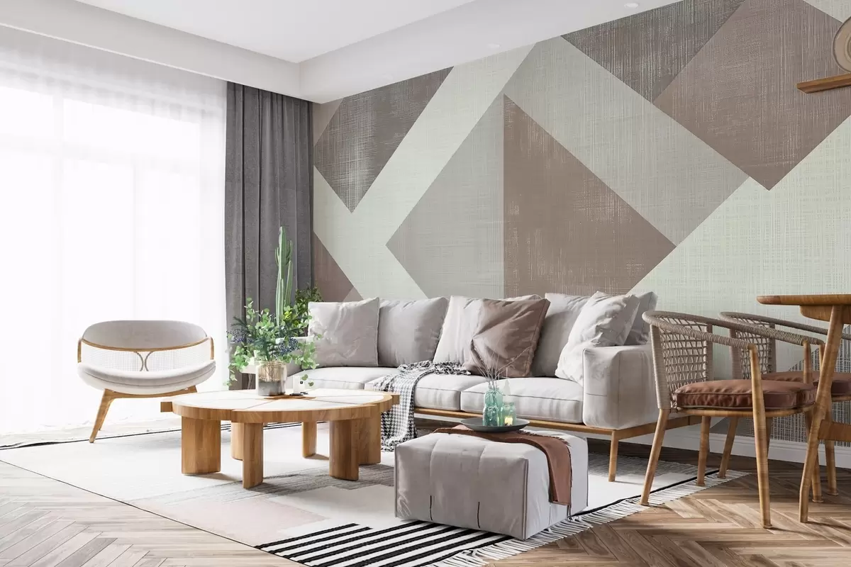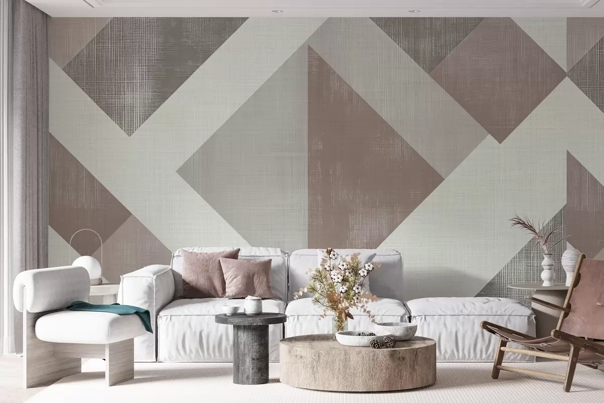 Fototapeten Modernes geometrisches Tapetendesign mit sich überlappenden Formen in sanften Beige-, Grün- und Grautönen N° w02341v1