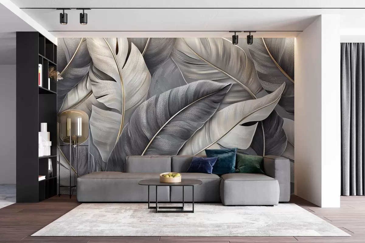 Fototapeten luxuriöse Tapete mit großen tropischen Blättern N° w02342