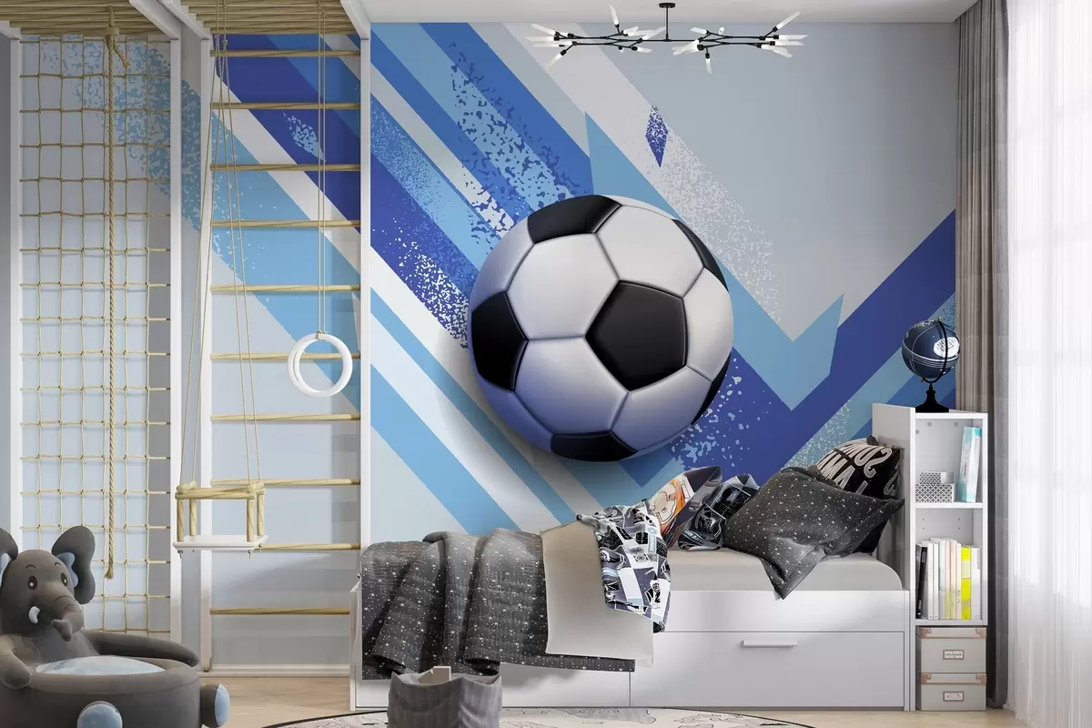 Fototapeten fußball auf dynamischen abstrakten Hintergrund in blauen Farben N° w02347