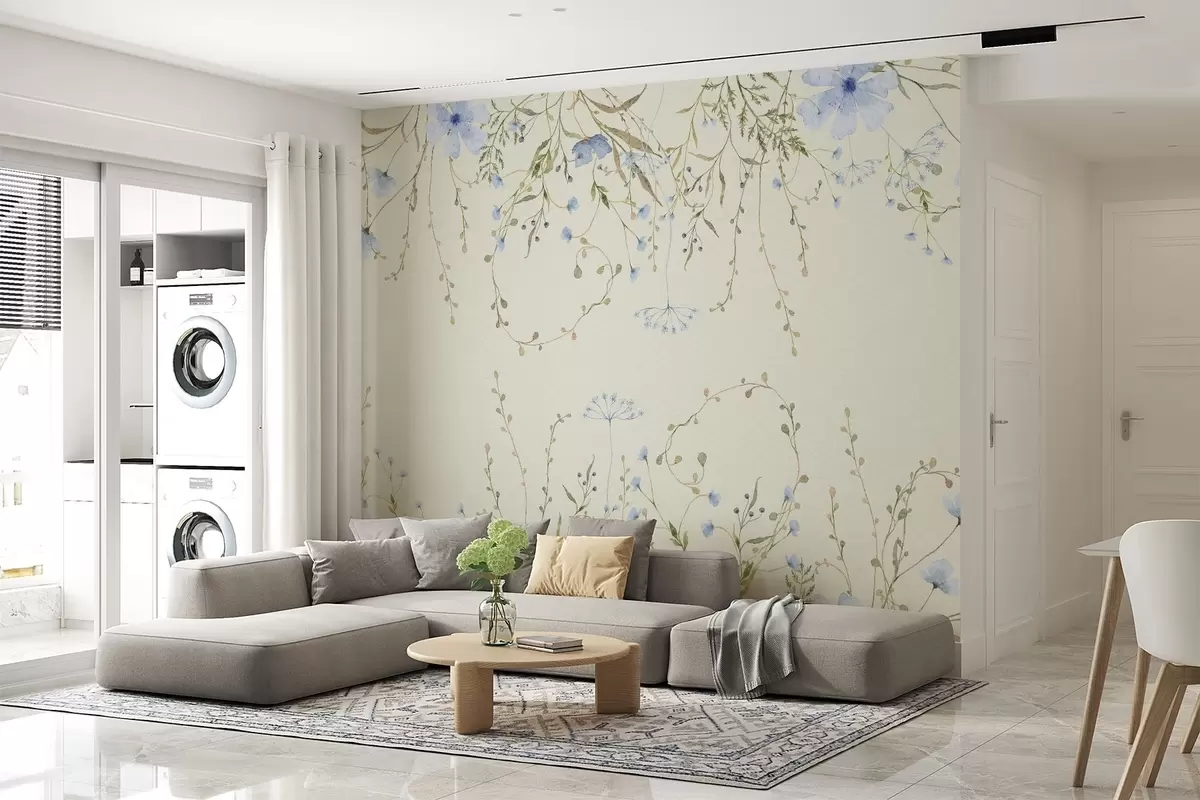 Fototapeten zarte Wildblumen auf einem milchigen Hintergrund N° w02348