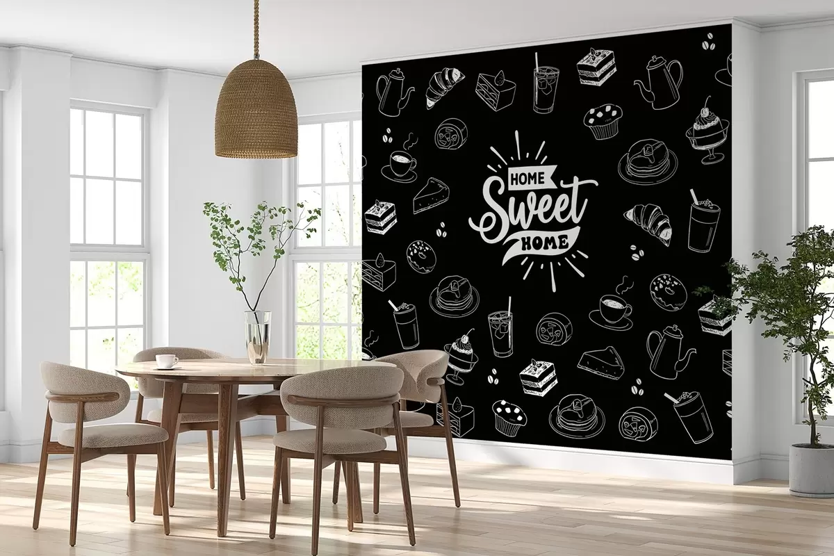 Fototapeten schwarze Tapete für die Küche mit weißen Mustern N° w02349