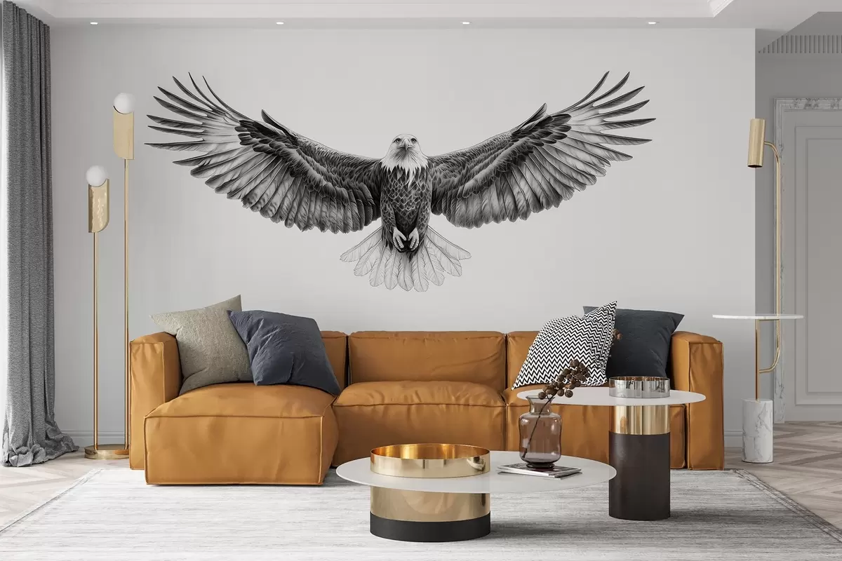 Fototapeten Fliegender Adler, Bleistiftzeichnung, Vögel, Minimalismus N° w02370