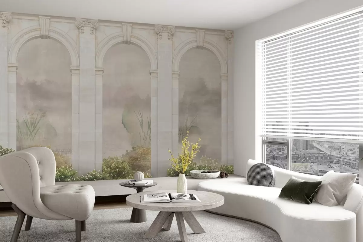 Fototapeten Lichtbögen mit Büschen und Blumen N° w02371v1