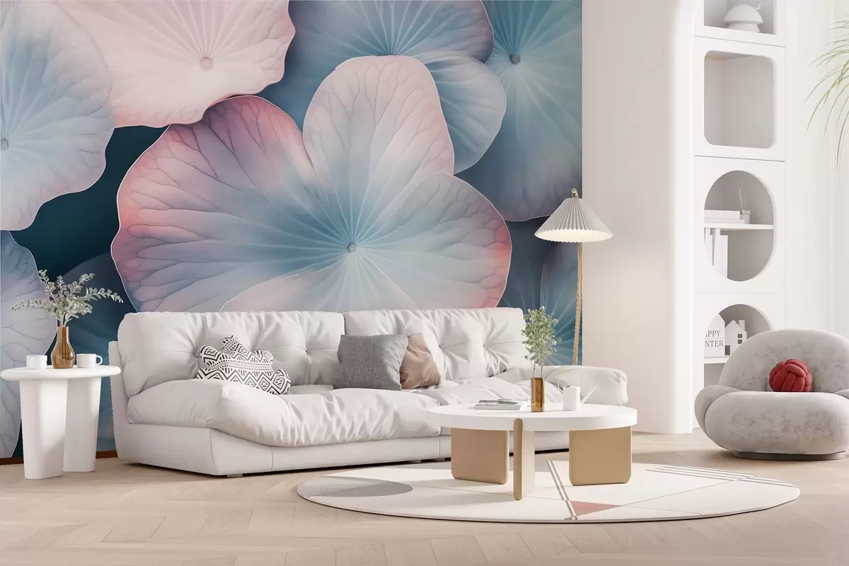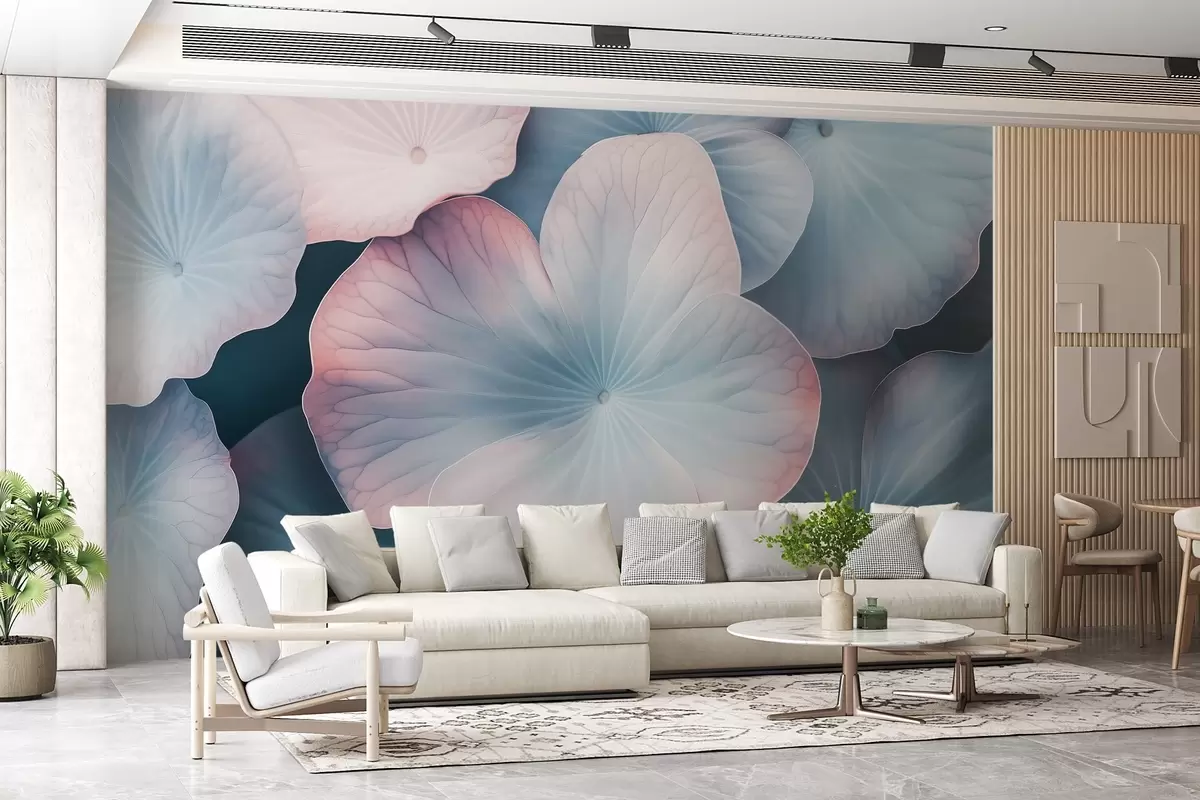 Fototapeten große Lotosblätter in zarten Farben N° w02403