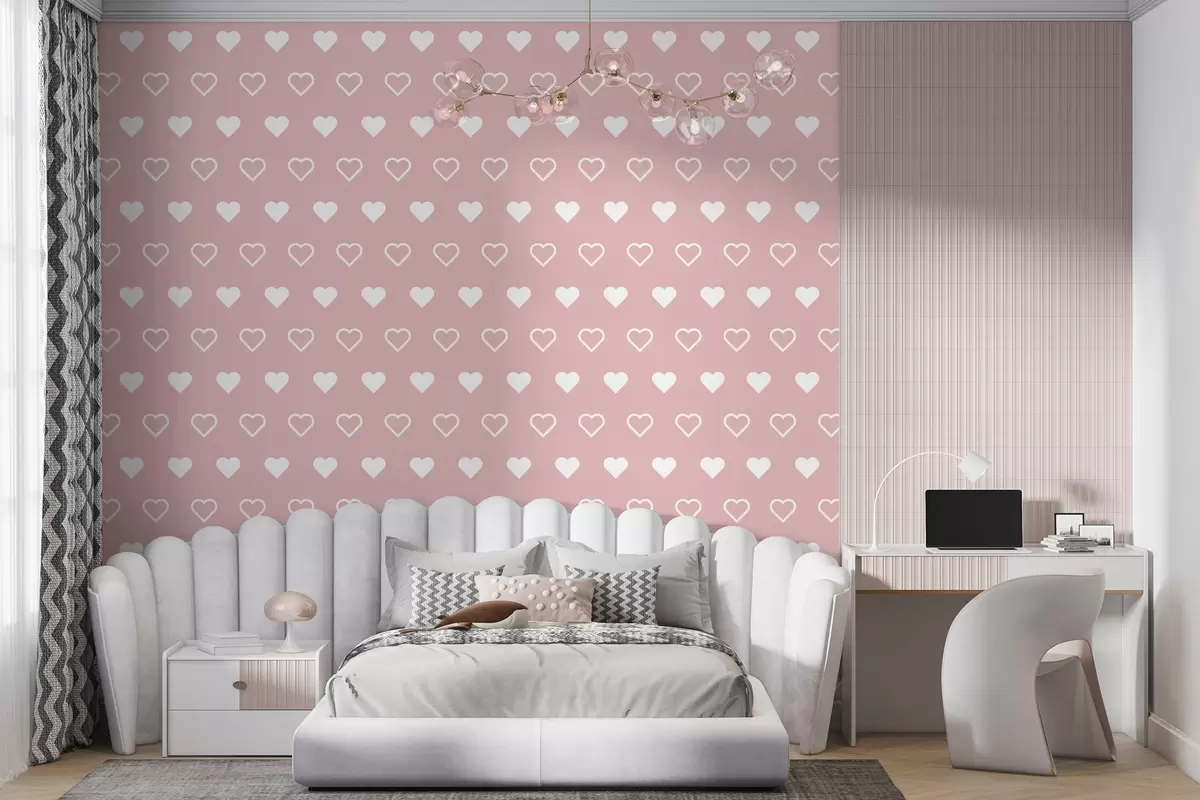 Fototapeten minimalistischer Herzdruck auf rosa Hintergrund N° w02548