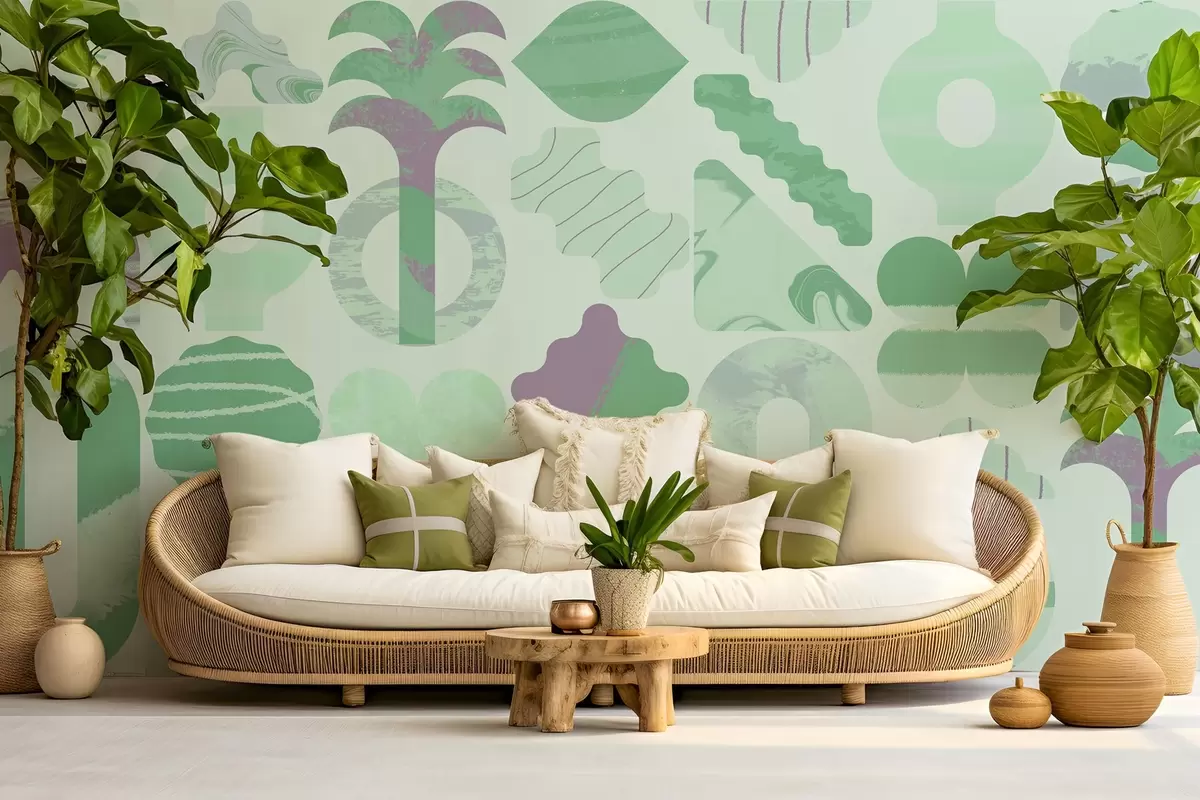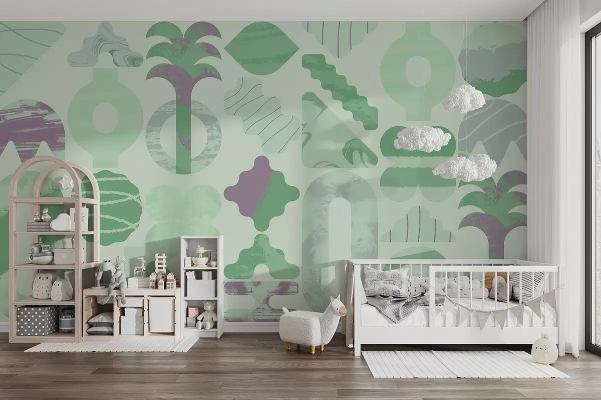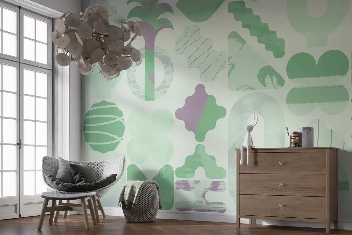 Fototapeten verschiedene interessante Formen, moderne Geometrie in grünen Farben N° w02550v2
