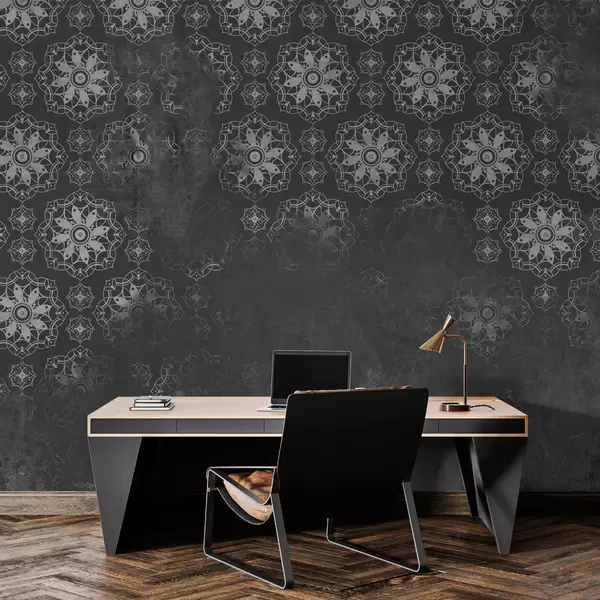 Fototapeten Vintage-Design mit Mandala-Elementen und Used-Effekt in Grau N° w02551v1