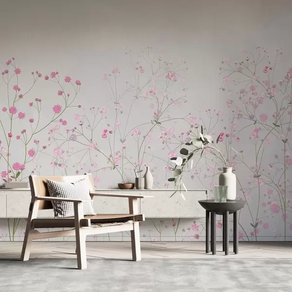 Fototapeten kleine Wildblumen auf grauem Hintergrund N° w02659
