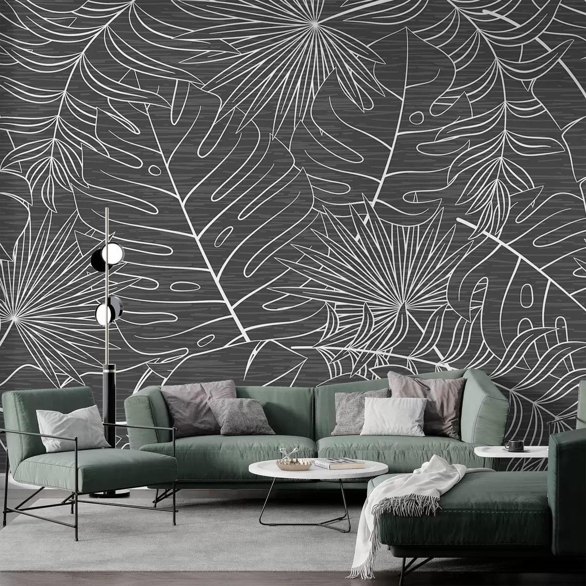 Fototapeten Tropische Blätter im grafischen Stil N° w02695