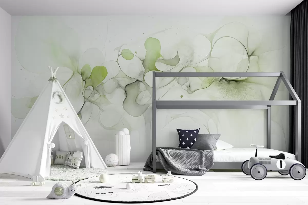 Fototapeten Fließender Kunststil, Abstraktion, weiche grüne Farben N° w02745v1