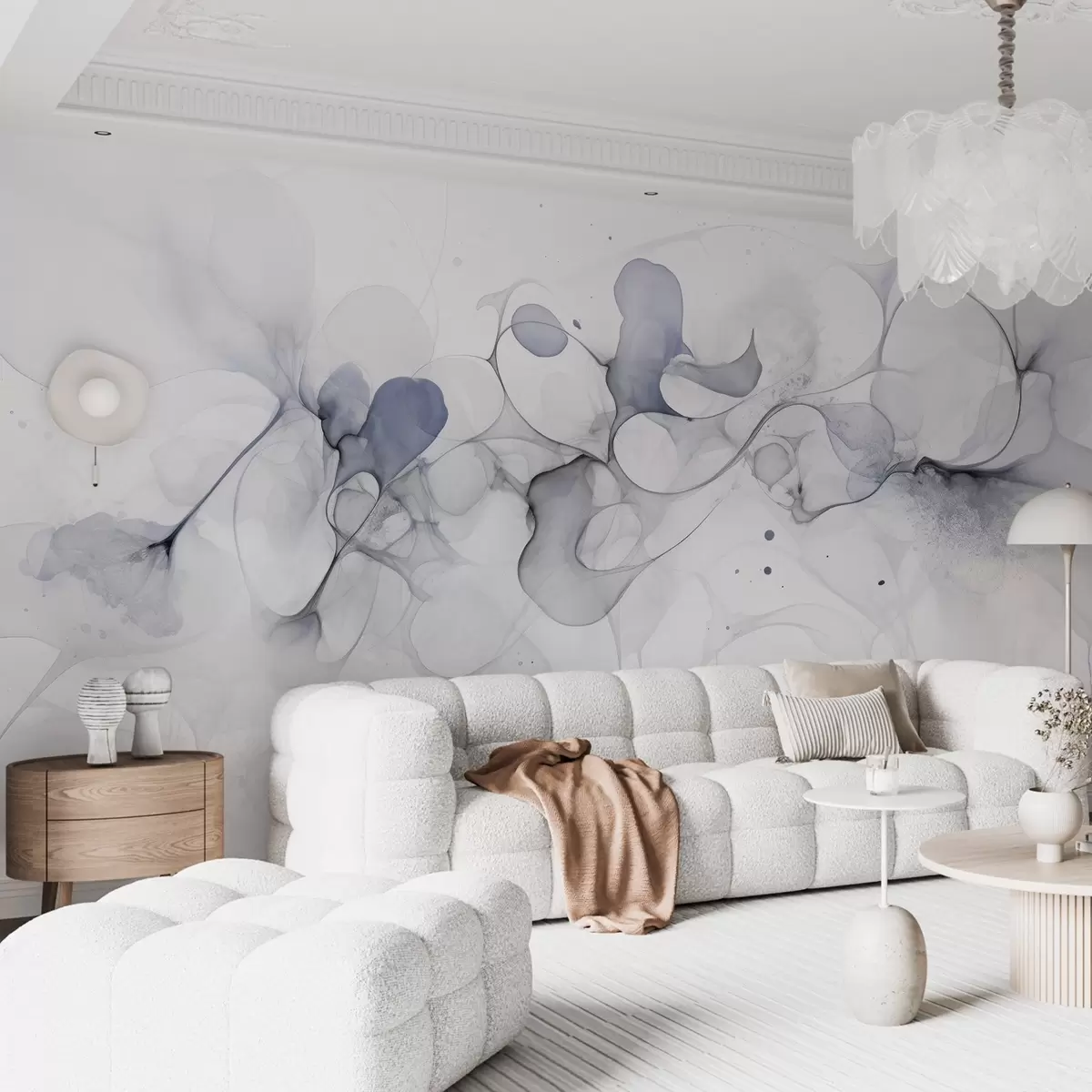 Fototapeten Fließender Kunststil, Abstraktion, weiche graue Farben N° w02745v3