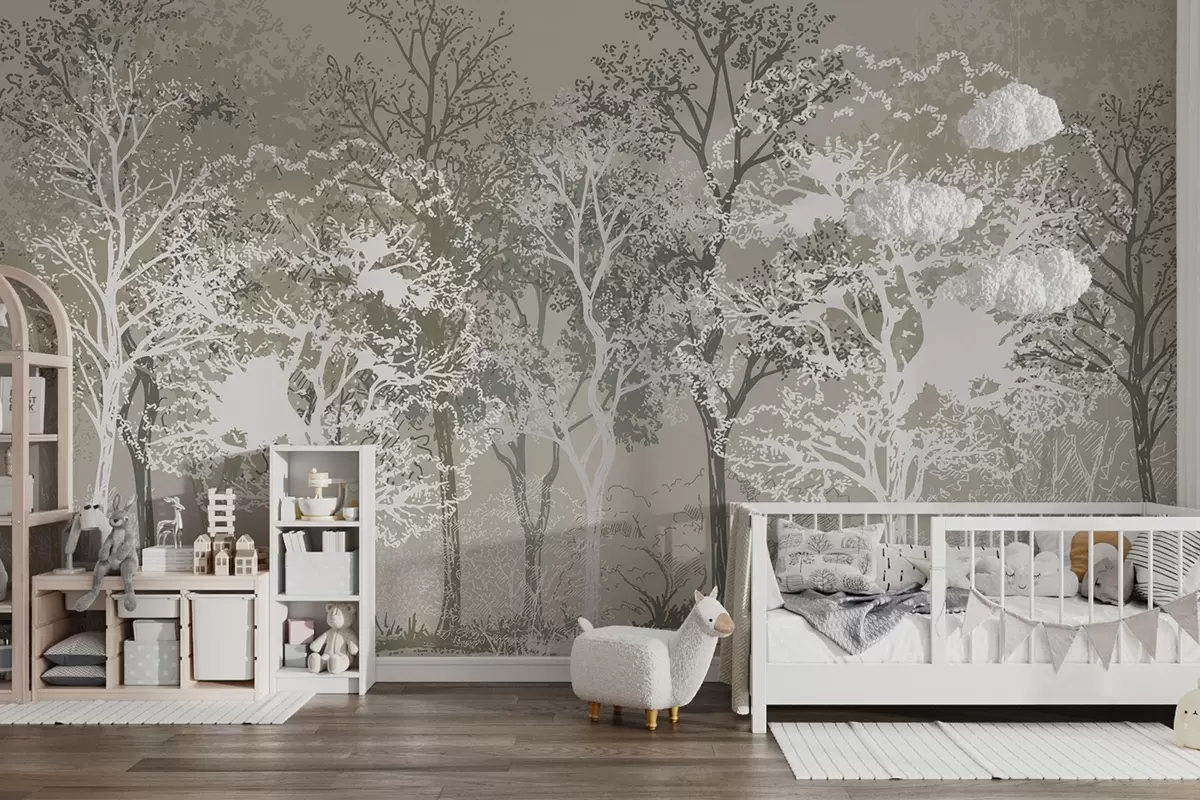 Fototapeten Bäume im Wald, Minimalismus, Natur, grüne Farbpalette N° w02930v1