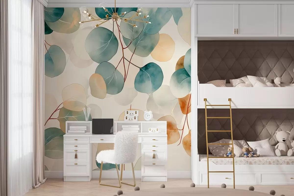Fototapeten Aquarell-Stil Eukalyptus Zeichnung, weiche Pastellfarben, floral N° w02938