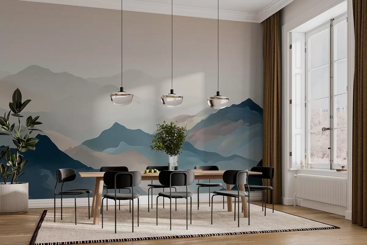Fototapeten Neblige Landschaft mit Bergen N° w02997