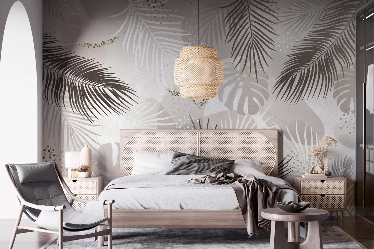Fototapeten Abstrakte tropische Blätter und Linien Trend N° w03060v1
